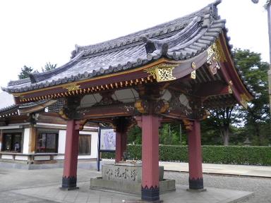 大田区教育委員会 この梵鐘は正保四年当山第十七世日東上人の代に加藤清正公の息女瑤林院の寄進によって新鋳されたのを七十年の後第二十三世日潤承認の代に改鋳したものであって爾来二百三十余年鯨音四鄰に震い霊域に荘厳を加えていた然るに昭和二十年四月十五日空襲の戦火を蒙むり嫋々たる余韻を失うにいたった檀家總代の児玉誉士夫はこのことを寂寥とし発願して新たに梵鐘を造ったよってその撞 昭和三十九年十一月十三日 所在 東京都大田区池上1-1-1 (池上本門寺) 日朝堂は常唱堂ともいい大曼荼羅御御本尊と共に眼病救護の行学院日朝上人をおまつりいたしております。 日朝上人は応永29年(1422年)伊豆宇佐美でご誕生になり8才で出家され苦修練行昼夜常精進の行学修行を続けられました。 学徳兼備の誉れ高く 41才の時 身延山第十一世法主となられ現在の身延山久遠寺隆昌の基礎を築かれ 又 関東に布教しては新寺四十余ヶ寺を建立されました。 御年61才の3月「眼病消滅の御本尊」をお書きになり なお一層教化と著述に(著書七百余巻)専念され 明応9年(1500年) 79才を以てご遷化されました。 当山では日朝上人の徳を讃え ご尊像を当堂にご安置いたしましたところ日を追って参詣者が多くなり 常にお題目を唱える道場として知られるようになりました